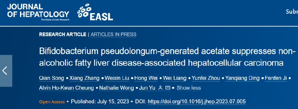香港中文大学于君团队发现乙酸盐抑制非酒精性脂肪肝疾病相关的肝细胞癌!